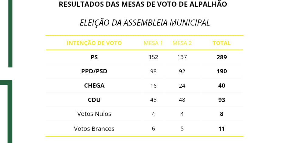 Out132025Notícias Resultados das Eleições Autárquicas 2025 em Alpalhão. Category: NotíciasBy Freguesia Alpalhao13 de Outubro, 2025 Author: Freguesia Alpalhao Post navigationPreviousPrevious post:Festa da padroeira N. Sr.ª da GraçaNextNext post:Dia da Freguesia de AlpalhãoRelated PostsDia de Finados – Romagem ao Talhão dos Combatentes4 de Novembro, 2025Dia de Todos os Santos – Oferta de “Esmolinhas dos Santos”4 de Novembro, 2025Revista “Terra de Valor”3 de Novembro, 2025Dia da Freguesia 202528 de Outubro, 2025Instalação dos novos Órgãos Autárquicos da Freguesia21 de Outubro, 2025Dia da Freguesia de Alpalhão13 de Outubro, 2025